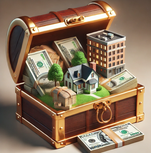 예시 : 공장, 사무실, 은행 계좌에 있는 돈을 합쳐서 총자산 5조 원