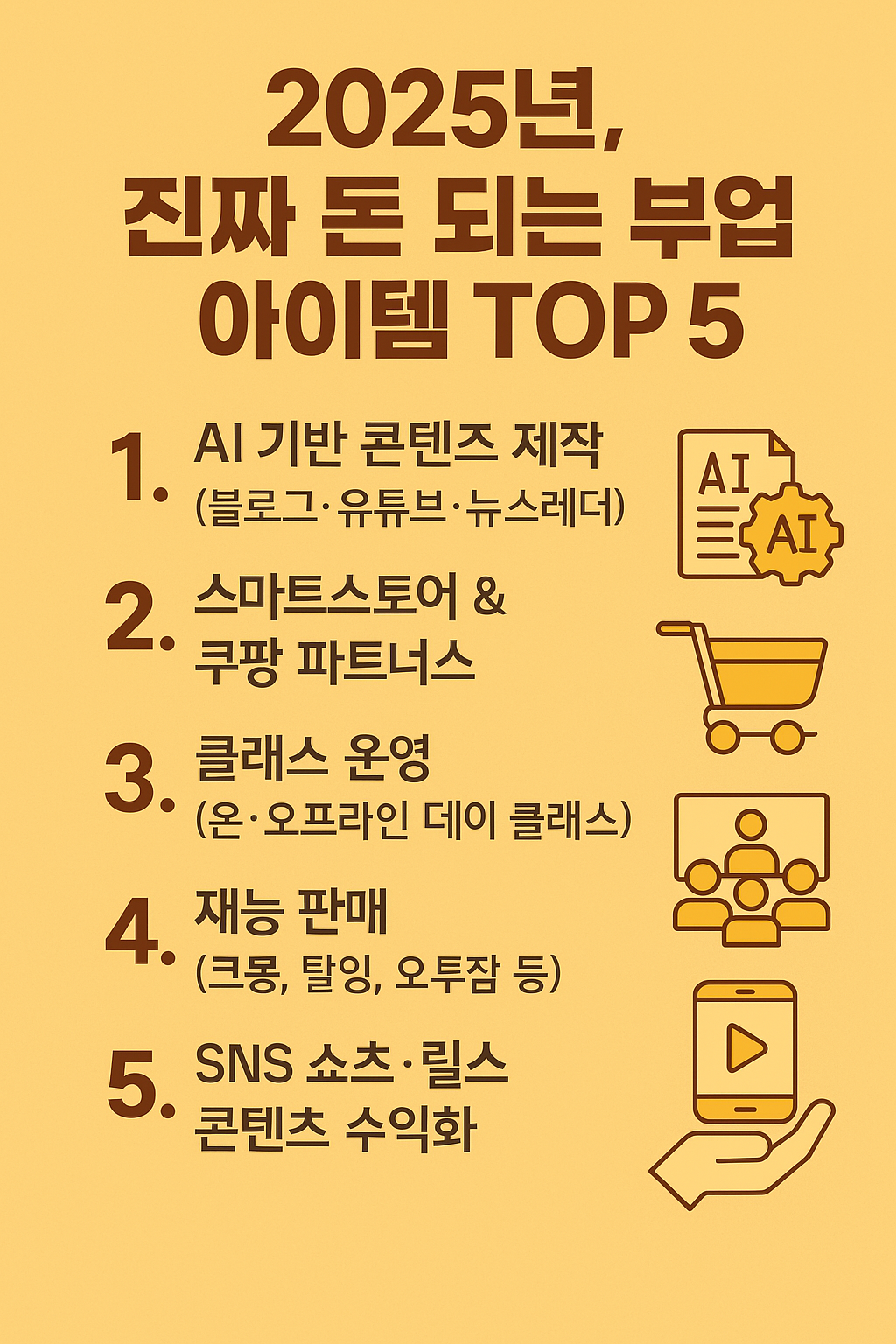 2025년, 진짜로 돈 되는 부업 아이템 5가지를 소개합니다.
